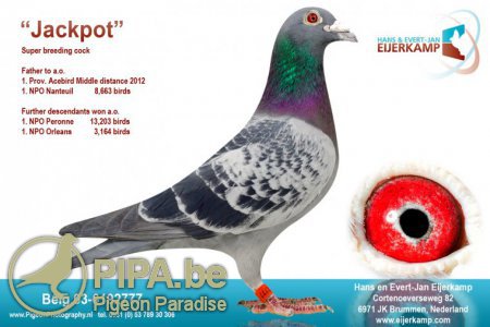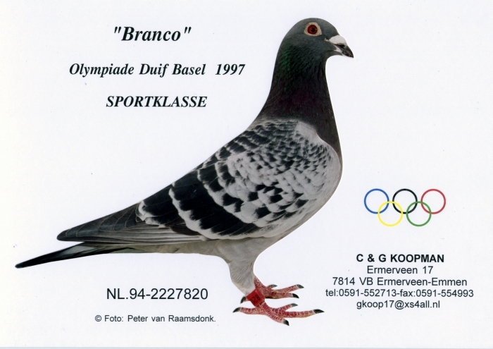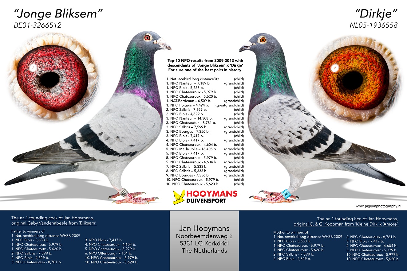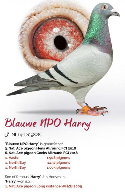 Uit: “Turbine Harry”, H. & E.J. Eijerkamp (1/2) broer 3. Olympiade duif Servië Cat. G. 1.- 3.720 d., 1.- 1.448 d., 1.- 843 d., 1.- 498 d., 1.- 249 d. klzn. “Harry”, Jan Hooymans & “Di Caprio”, Leo Heremans x “Capri – Sun”, d. “Blaze”, 1.-6.-7. etc. als jong.