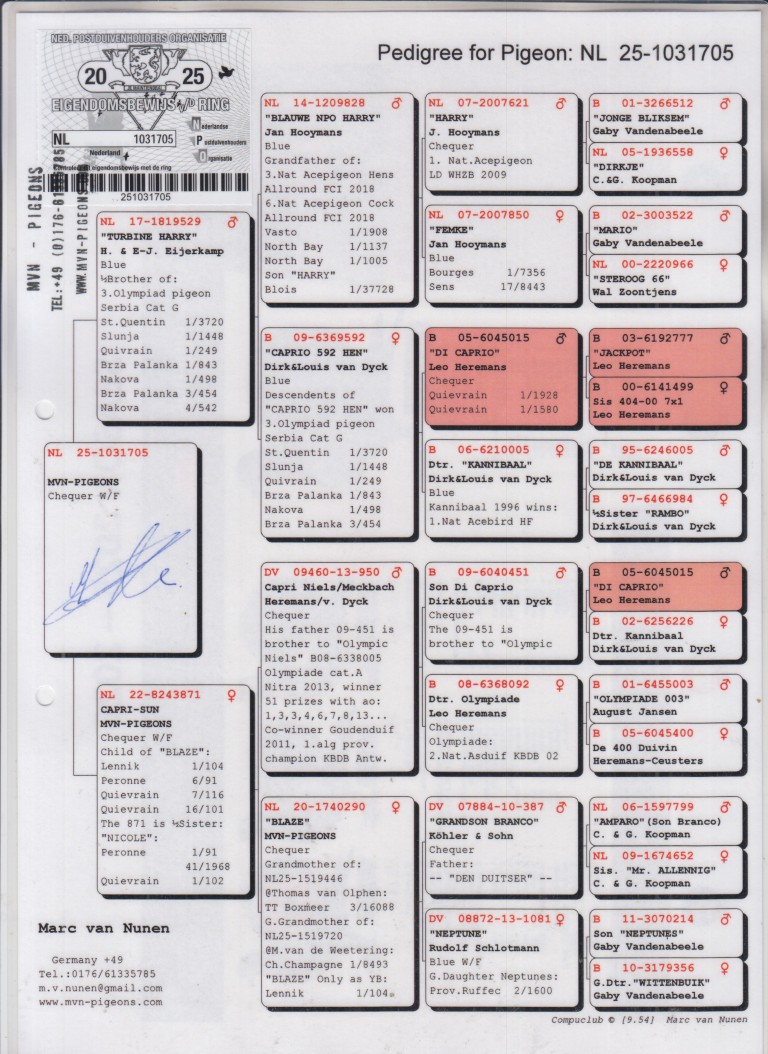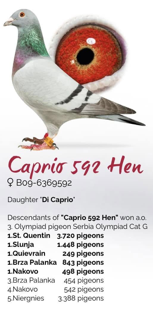 Grootmoeder: BE09-6369592. ‘Caprio 592 duivin’, Dirk & Louis Van Dyck