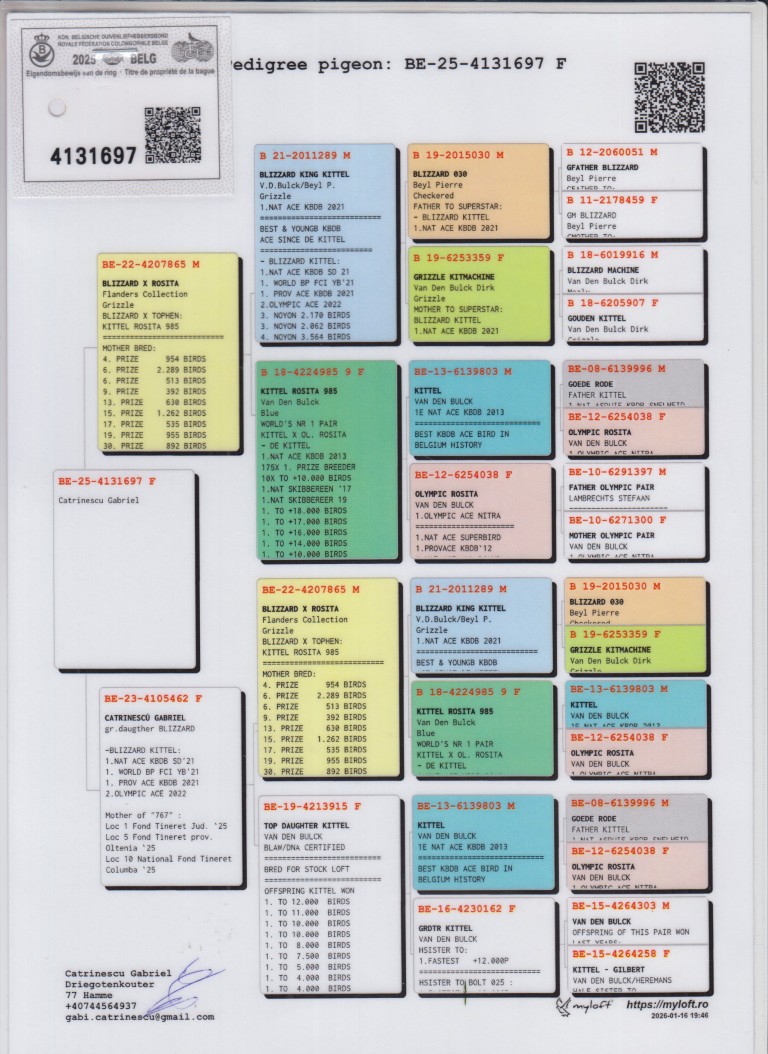 Moeder: B23-4105462. Gabriel Catrinescu. Kleindochter ‘Blizzard’.