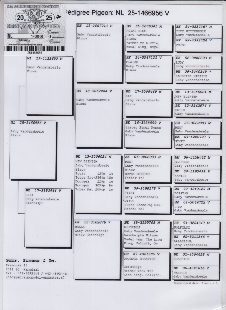 Hij komt uit BE06-3008003. “Rudy”. Gaby Vandenabeele.