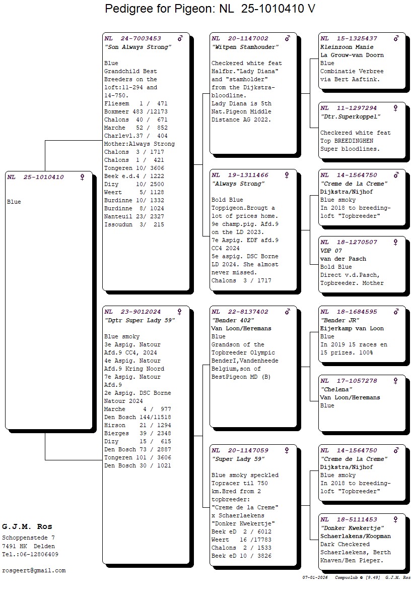 Grootmoeder: NL20-1147059. ‘Super Lady 59’.