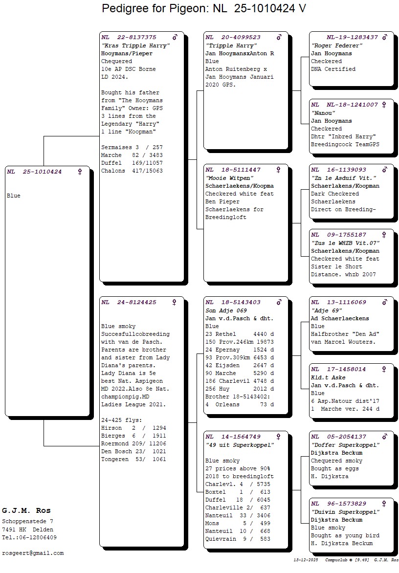 Grootvader: NL20-4099523. ‘Tripple Harry’, Jan Hooymans x Anton Ruitenberg.