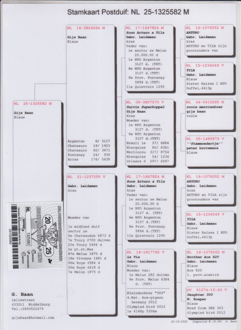 Grootmoeder: NL08-3807570. ‘Duivin Superkoppel’, Gijs Baan