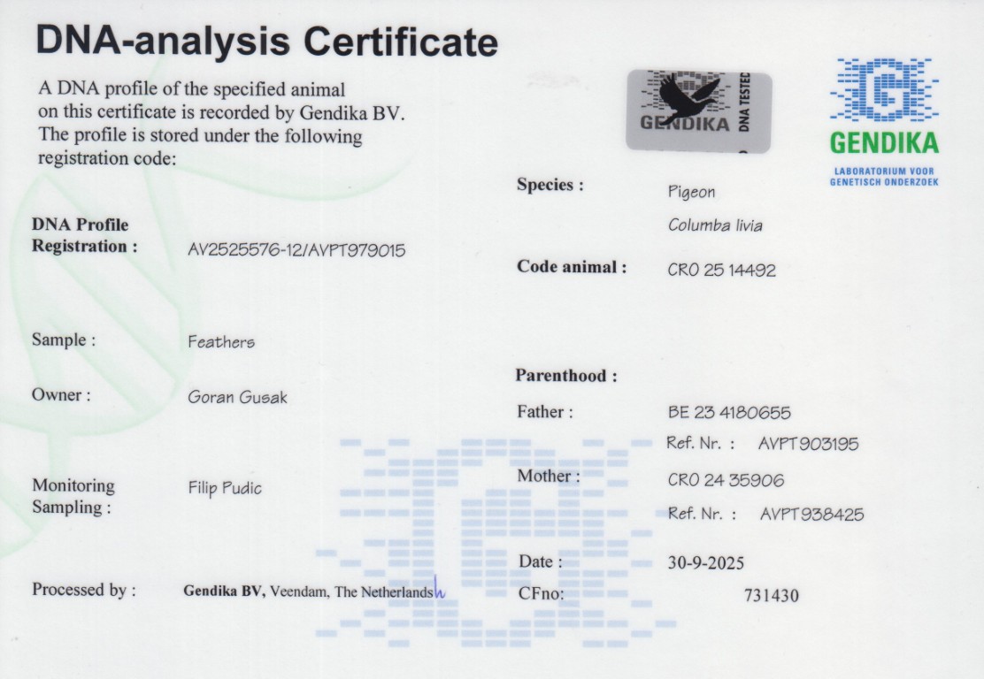 Grootmoeder: CRO19-24757. ‘Amazon’, DNA certified. Org. Gusak Goran.