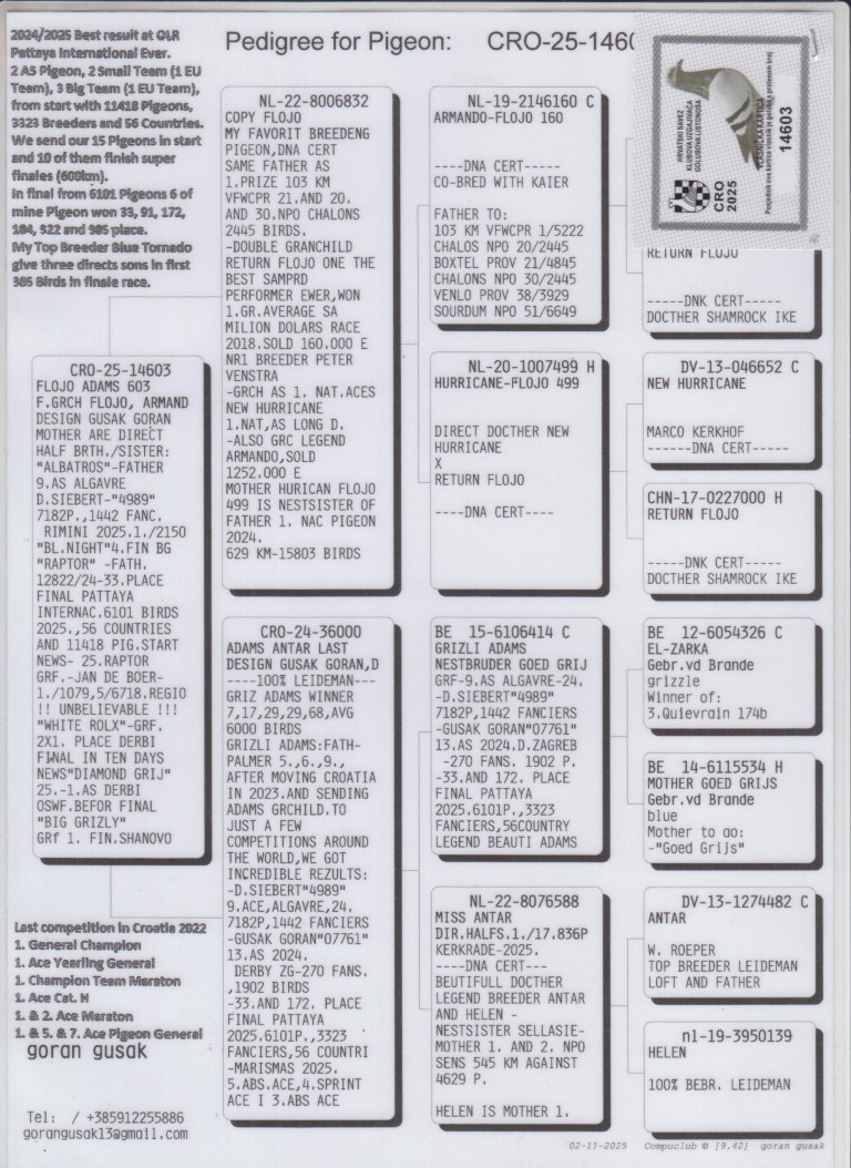LOT 5: CRO25-14603. “FLOJO ADAMS 603”. GORAN GUSAK