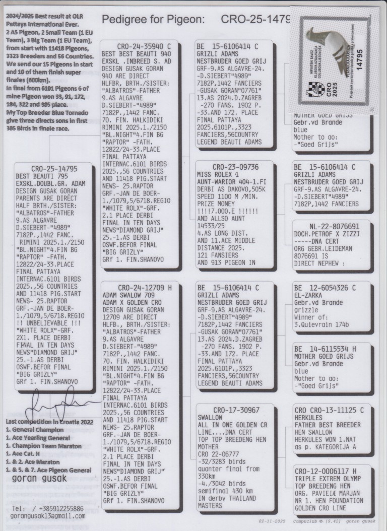 LOT 6: CRO25-14795. “BEST BEAUTI 795”. GORAN GUSAK