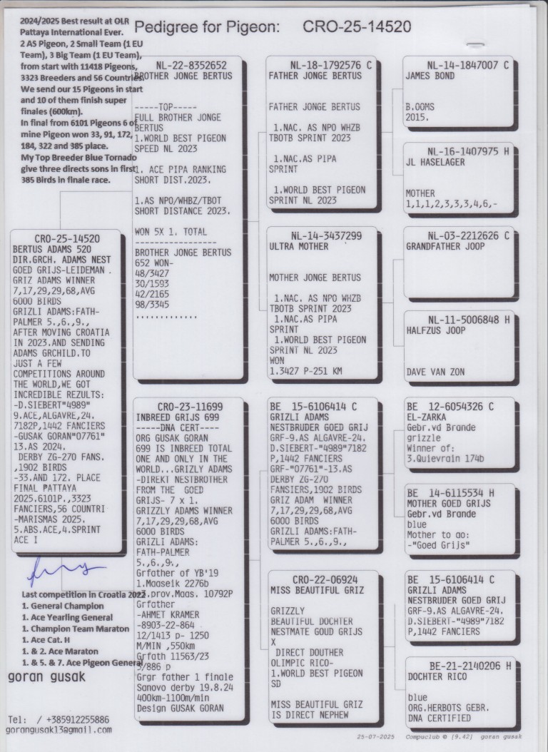Nadat we in 2023 naar Kroatië verhuisden en ‘Adams’ kleinkind naar een paar wedstijden over de hele wereld stuurden, kregen we ongelooflijke resultaten.
