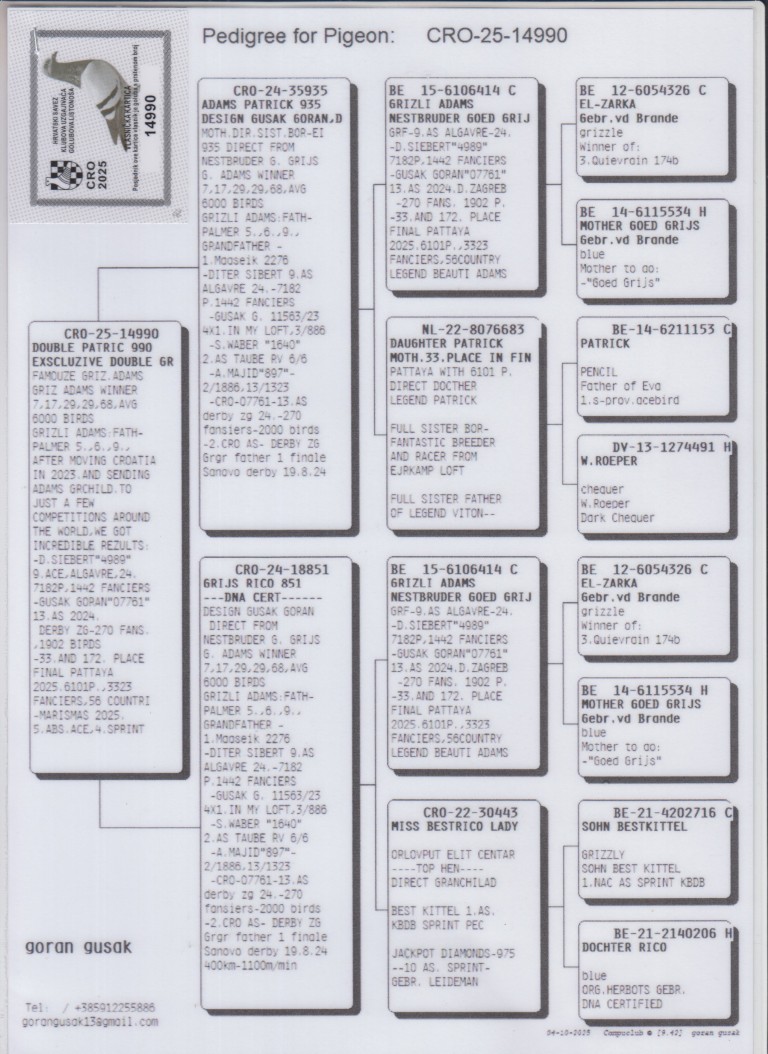 LOT 11: CRO25-14990. “DUBBEL PATRIC 990”. GORAN GUSAK
