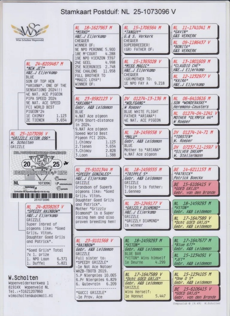 Grootvader NL23-9101344. “Speedy Gonzales”. H. & E.J. Eijerkamp.