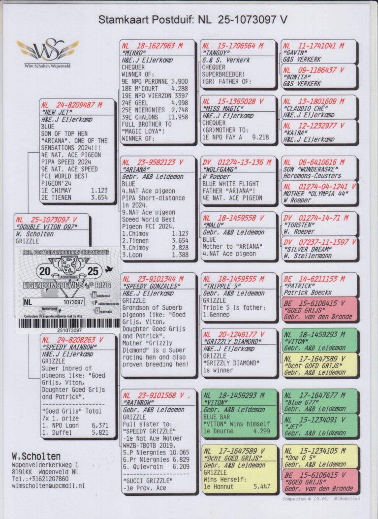 Grootvader NL23-9101344. “Speedy Gonzales”. H. & E.J. Eijerkamp.