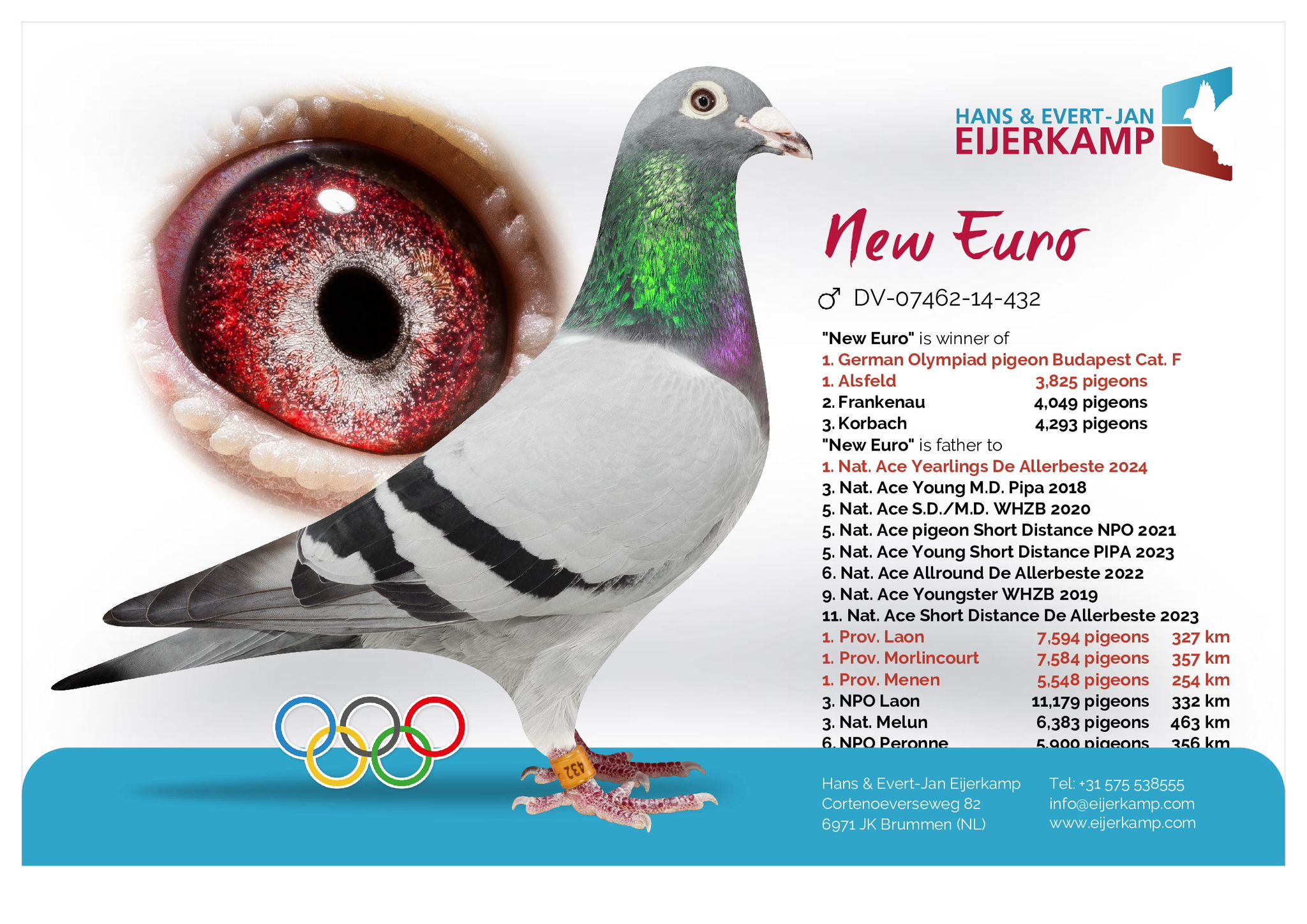 New Euro was 1. Duitse Olympiade duif Budapest Cat. F in 2015 en won o.a.