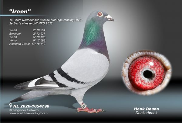 Grootmoeder is NL20-798 “Ireen” Beste vitesse duif PIPA 2022 en 2e beste vitesse duif NPO 2022 uit de gouden kweeklijnen van
