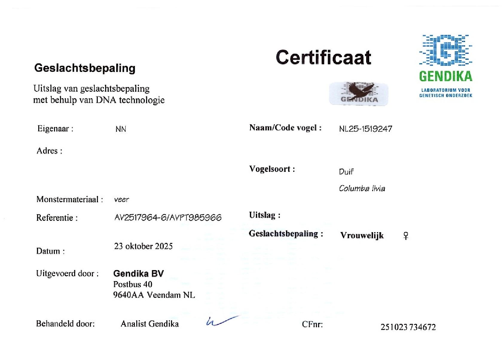 Lot 5: NL25-1519247. “Beauty Calisto” Duivin Kleindochter Calisto en Ireen