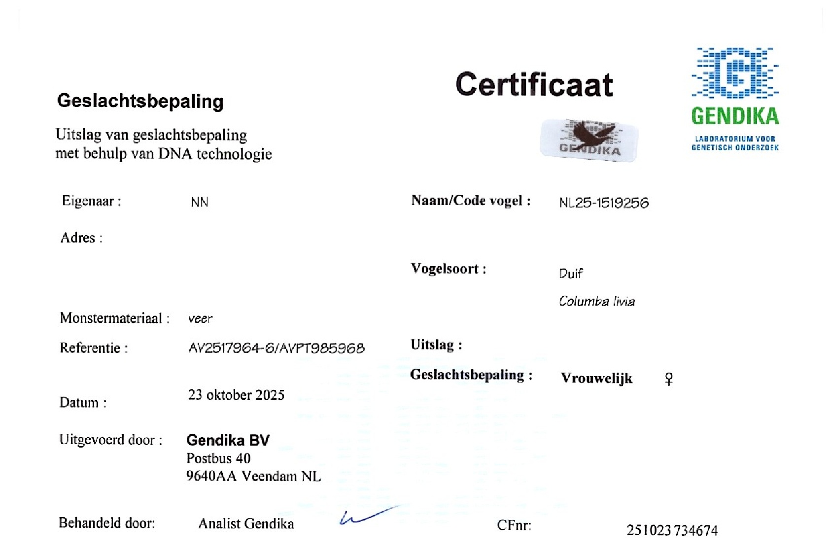 Grootmoeder is NL20-798 “Ireen” Beste vitesse duif PIPA 2022 en 2e beste vitesse duif NPO 2022 uit de gouden kweeklijnen van