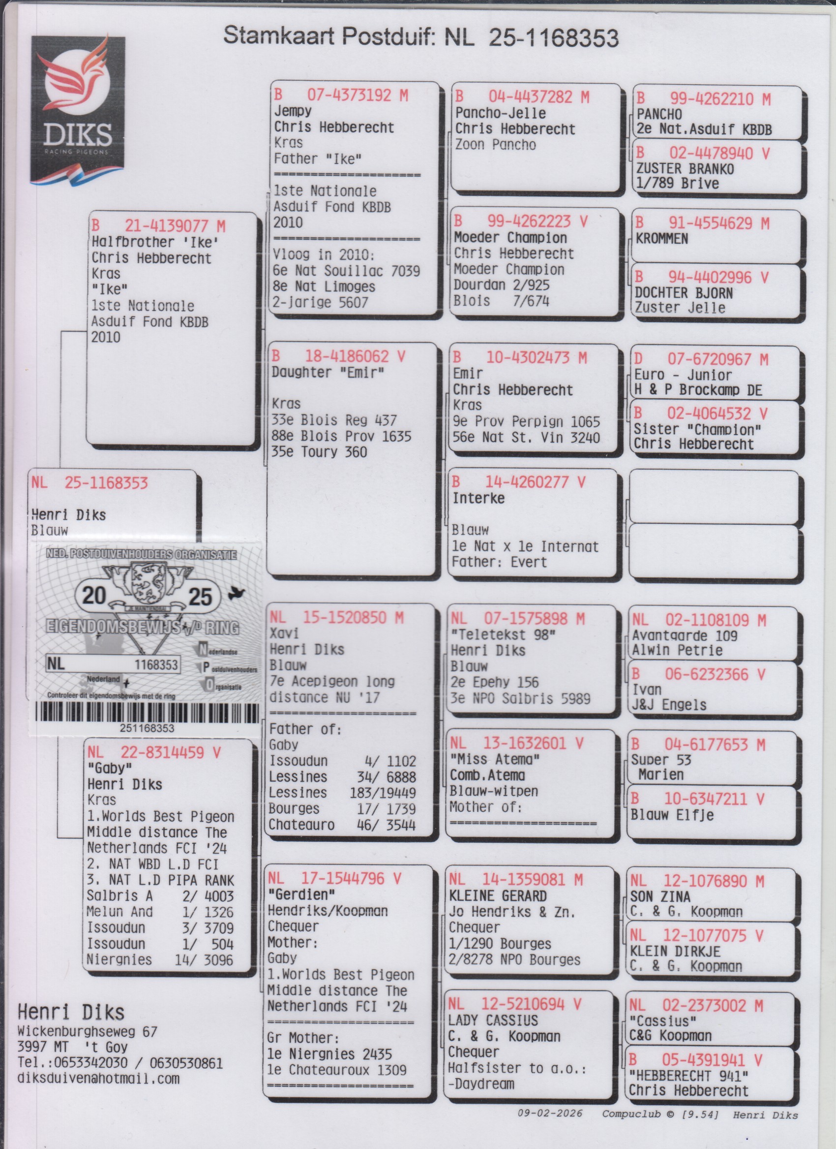 Grootvader: NL15-1520850. ‘’Xavi’’, Henri Diks .