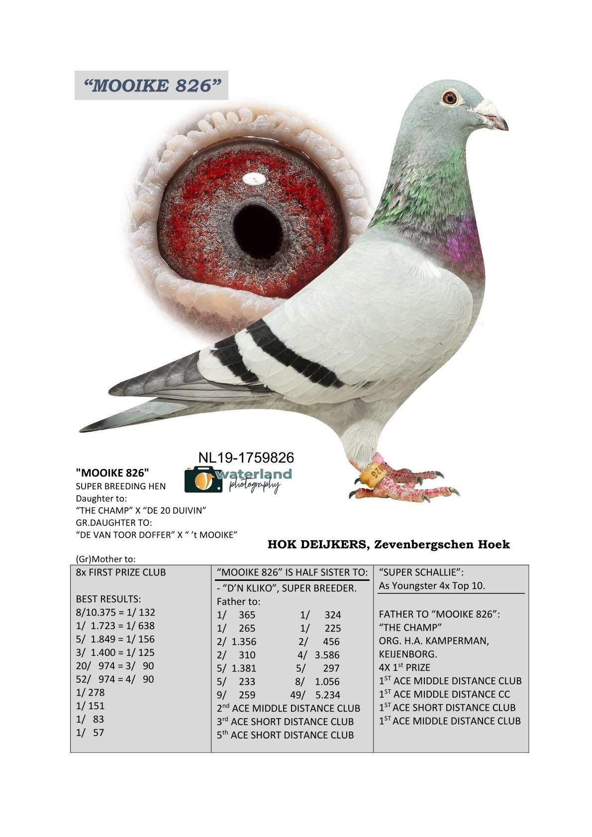 Moeder: NL19-1759826. ‘Mooike 826’, Hok Deijkers.