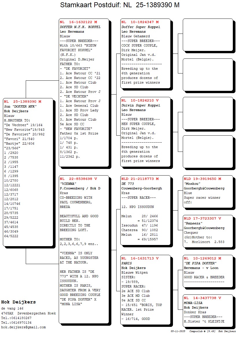 Grootmoeder: NL10-1824210. Duivin ‘Super Koppel’, Leo Heremans.
