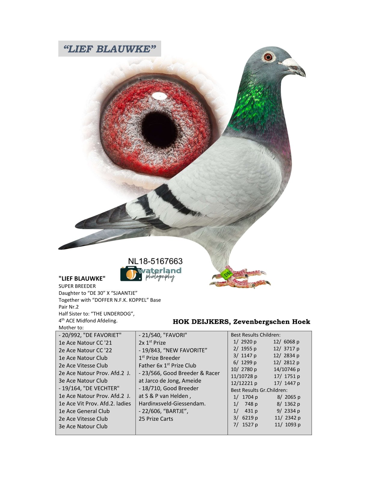 Grootmoeder: NL18-5167663. ‘Lief Blauwke’, Hok Deijkers.