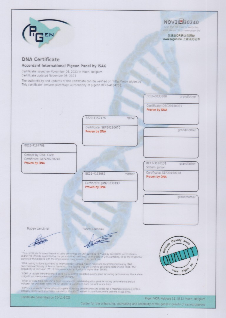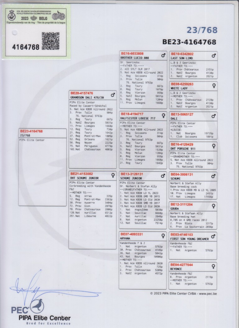 Grootvader: BE16-6033808. Broer ‘Lucio 808’, Origineel Geerinckx