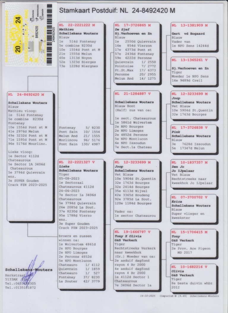 Grootvader: NL12-3233699. ‘’Joop’’, Schellekens Wouters.