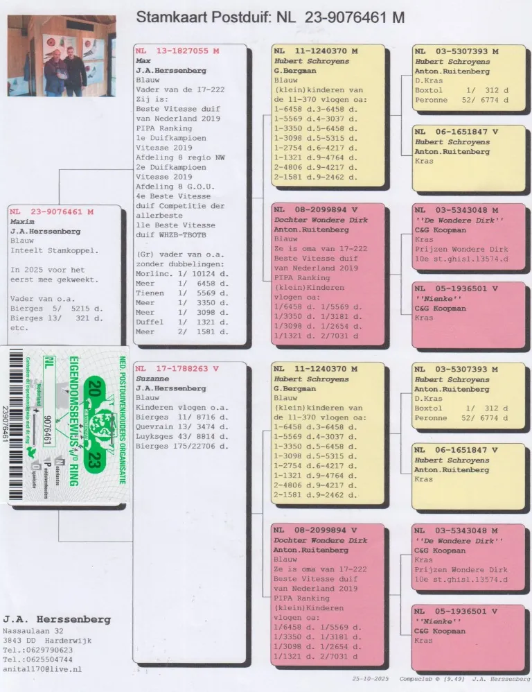 Vader: NL13-1827055. ‘’Max’’, J.A. Herssenberg.