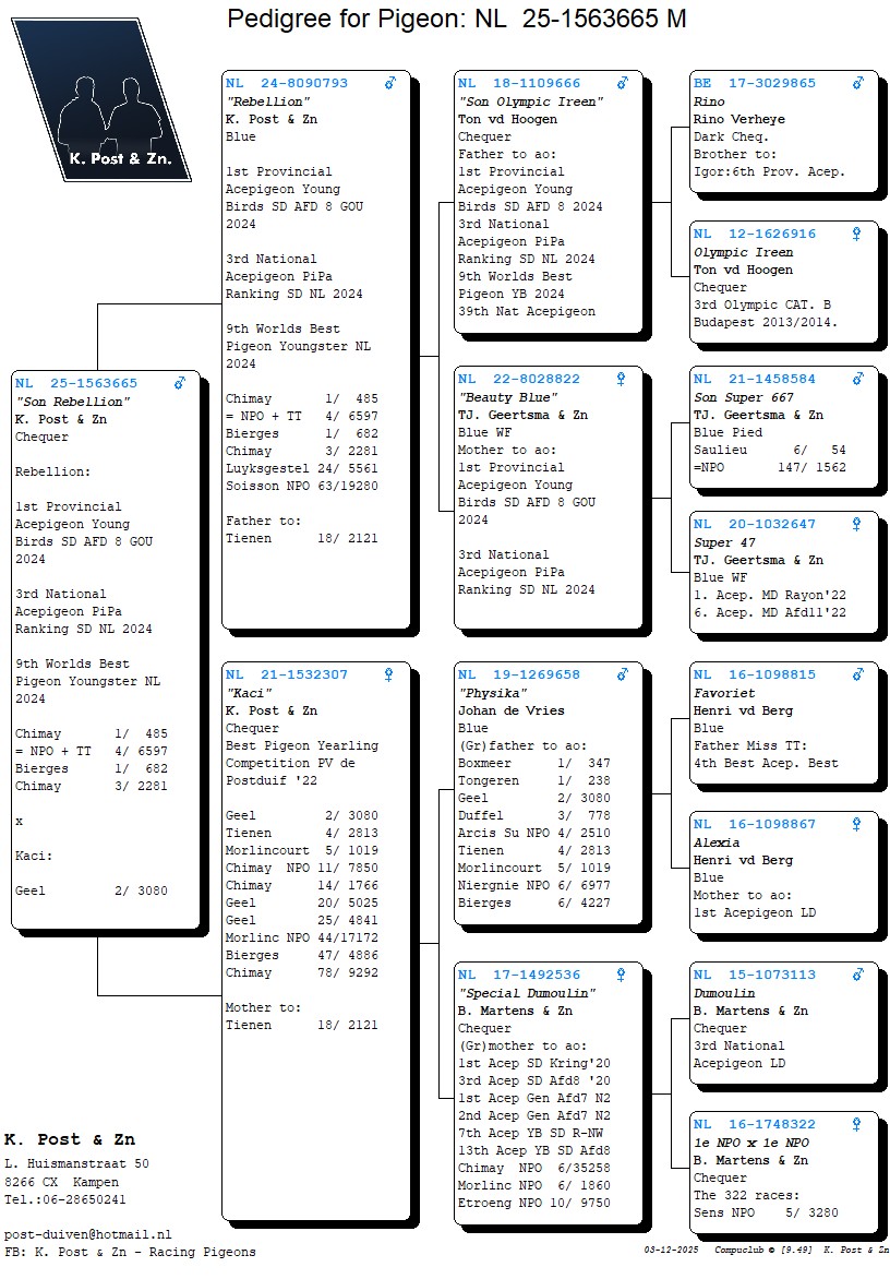 Grootvader : NL18-1109666. Zoon ‘Olympic Ireen’, Ton vd Hoogen