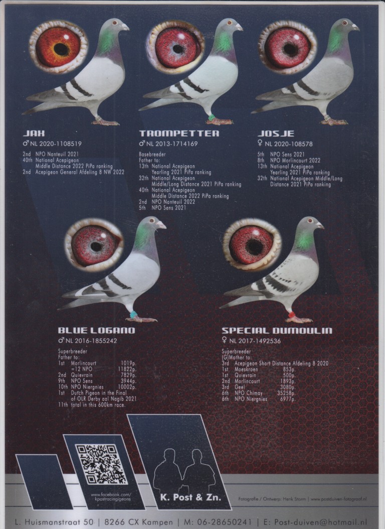 Uit: ”Rebellion”, 1. Prov. Asduif Jonge, 3. Nat. Asduif Sprint PIPA-Rankings, 9. Nat. Asduif Jonge FCI, 1.-485 d., 1.-682 d., 3.-2.281 d. x ”Kaci”, 1. Asduif Jaarlingen, 2.-3.080 d., 4.-2.813 d., 5.-1.019 d., 11. NPO 7.850 d.