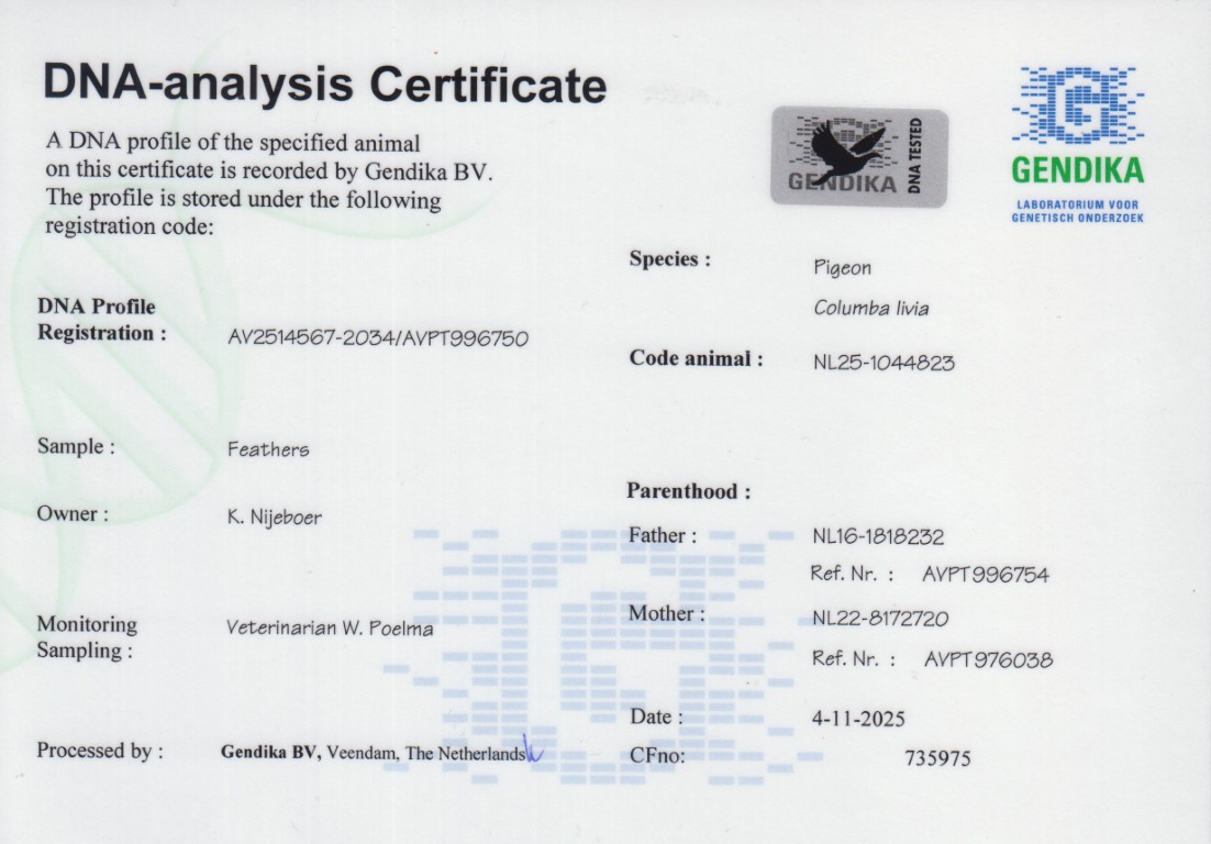 Vader: NL16-1818232. Kleinzoon ‘Seiko’, P. Veenstra