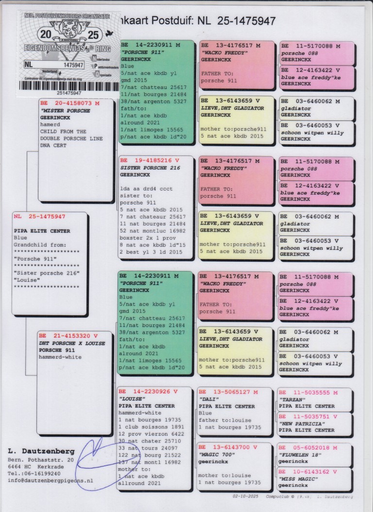 Grootmoeder: B19-4185216. Zuster ‘Porsche 216’, Geerinckx.
