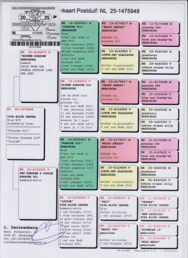 Grootmoeder: B19-4185216. Zuster ‘Porsche 216’, Geerinckx.