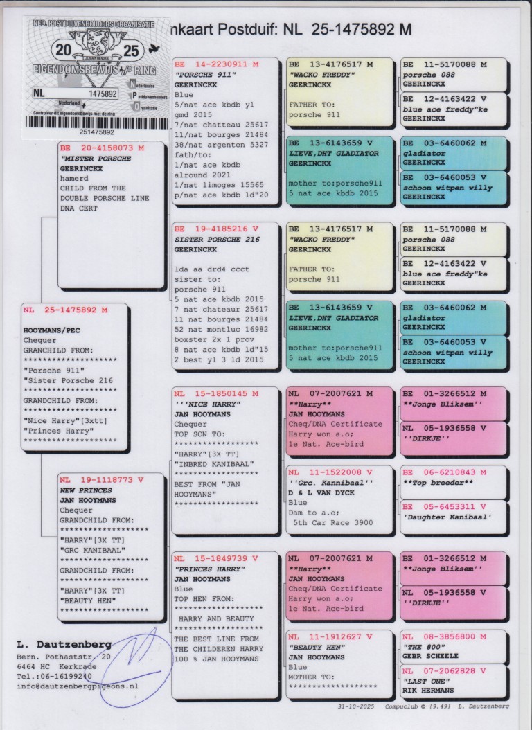 Grootmoeder : BE19-4185216. Zus ‘Porsche 216’, Geerinckx