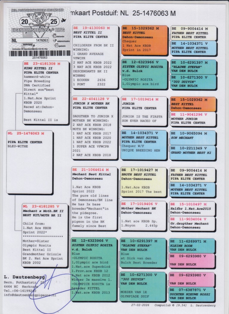 Grootmoeder: BE22-4041128. ‘Junior’ x moeder ‘Best Kittel’, Pipa Elite Center