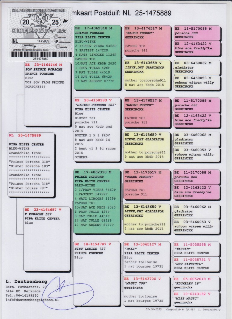 Grootmoeder: B20-4158183. Zuster ‘Porsche 183’, Pipa Elite Center.