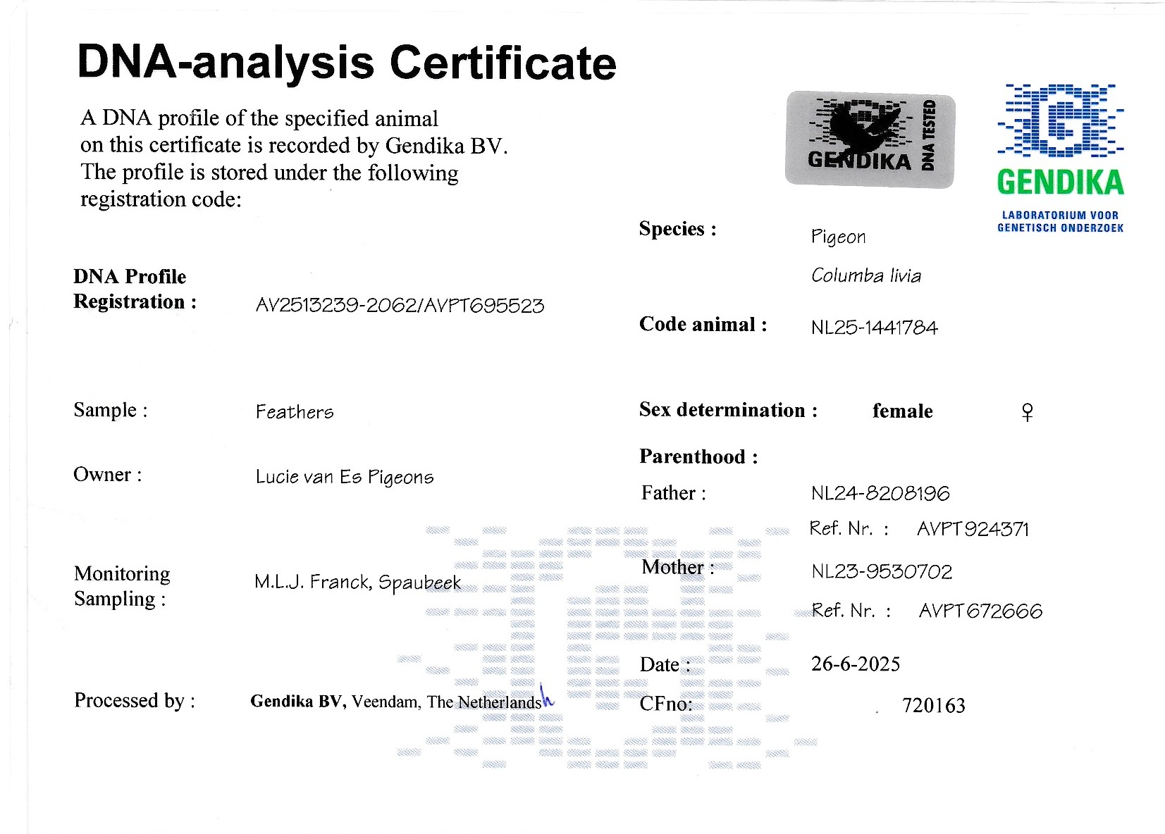 Uit: ”Expensive Grizzle”, broer ”Speedy Grizzle”, 1. Nat. Asduif WHZB, zoon stamkoppel ”Viton” & ”Daughter Goed Grijs” x ”Blue Goed Grijs”, uit dochter ”Goed Grijs”, 7x 1. Prijs & 1. NPO Laon 6.371 d. !!!!!!!!!!!!!!!!!!!!!!!!