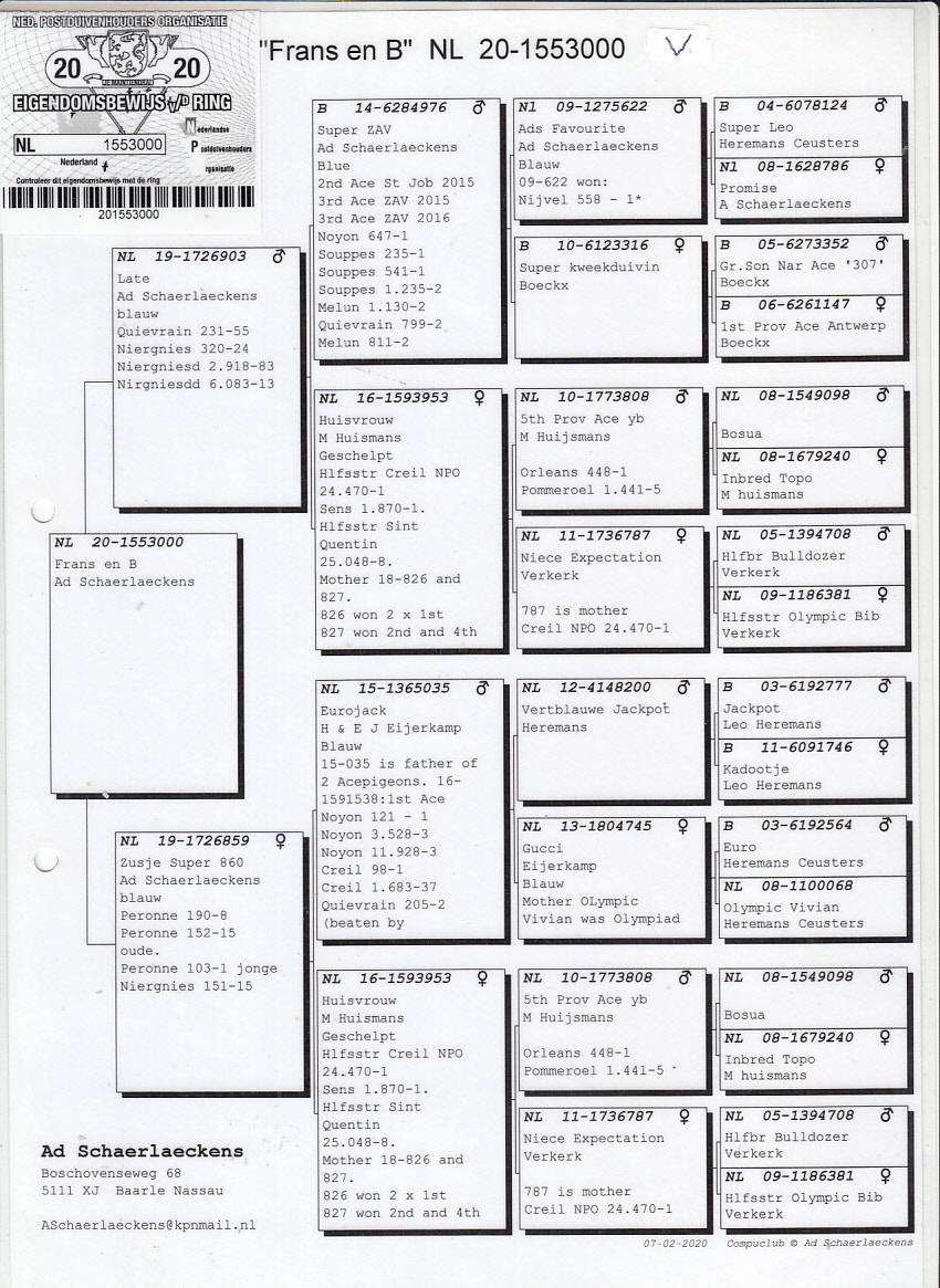 Moeder: NL19-1726859. Zusje ‘Super 860’, Ad Schaerlaeckens.