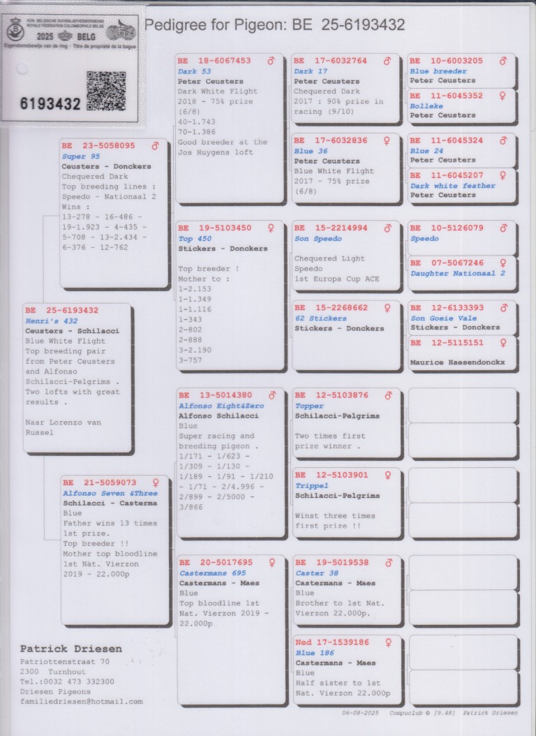 Lot 3: BE25-6193432. ‘Henri’s 432’, Ceusters-Schilacci