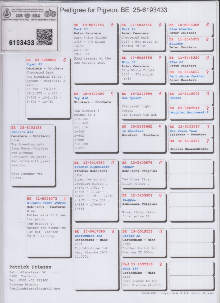 Lot 4: BE25-6193433. ‘Henri’s 433’, Ceusters-Schilacci