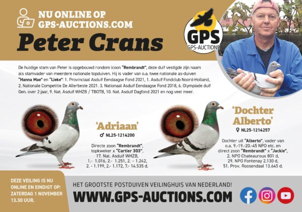 De stam van Peter Crans is opgebouwd rond zijn icoon “Rembrandt”, deze duif vestigde zijn naam als stamvader van meerdere nationale topduiven.