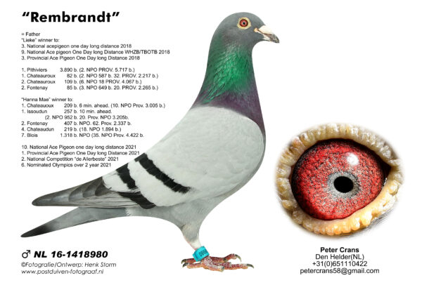 Rembrandt is een icoon in de Nederlandse duivensport.