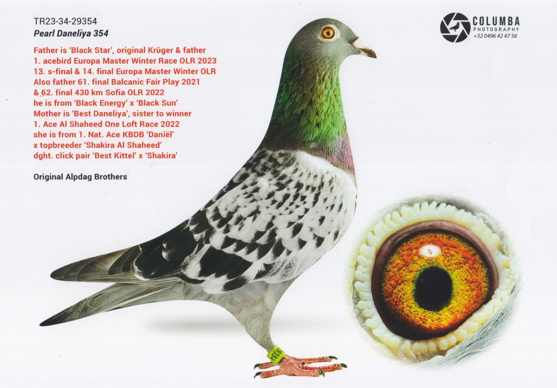 Uit: ”Black Star”, vader 1. Asduif OLR Europa Master, 13. Halve Finale & 14. Finale OLR Europa Masters x ”Best Daneliya”, dochter ”Daniël”, 1. Nat. Asduif KBDB, gr-vader 2. Finale OLR PIPR Pattaya, uit dtr. ”Best Kittel”