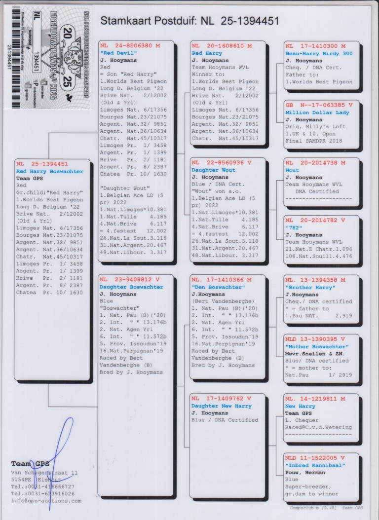 Hij komt uit NL17-1410300. ‘’Beau-Harry Birdy 300’’, Jan Hooymans.