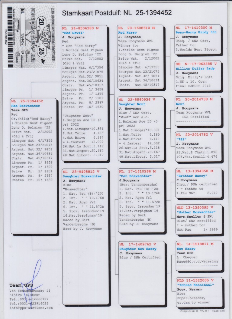 Hij komt uit NL17-1410300. ‘’Beau-Harry Birdy 300’’, Jan Hooymans.