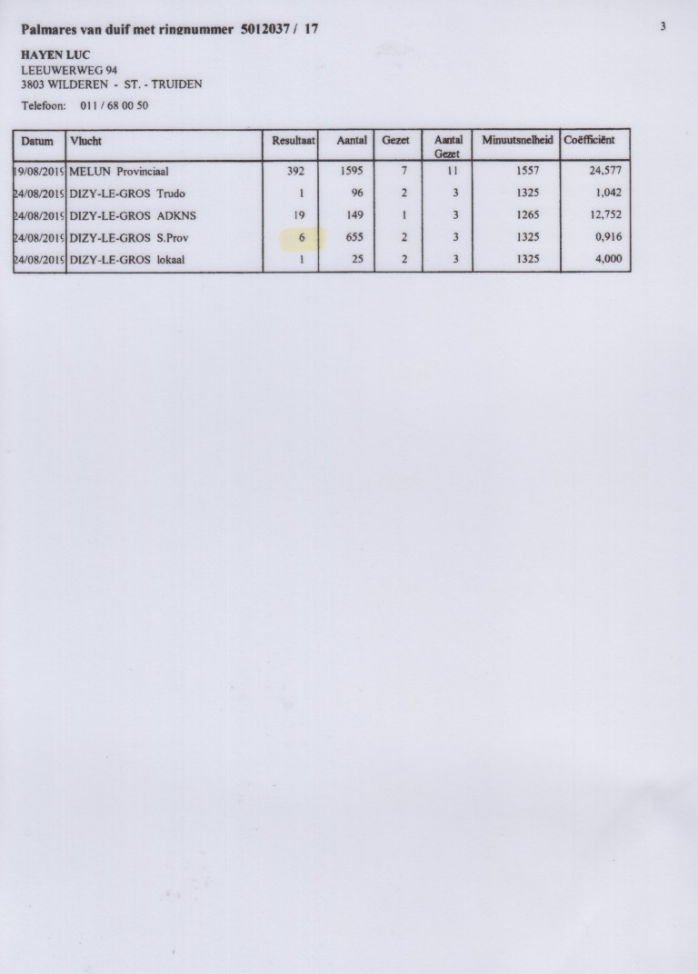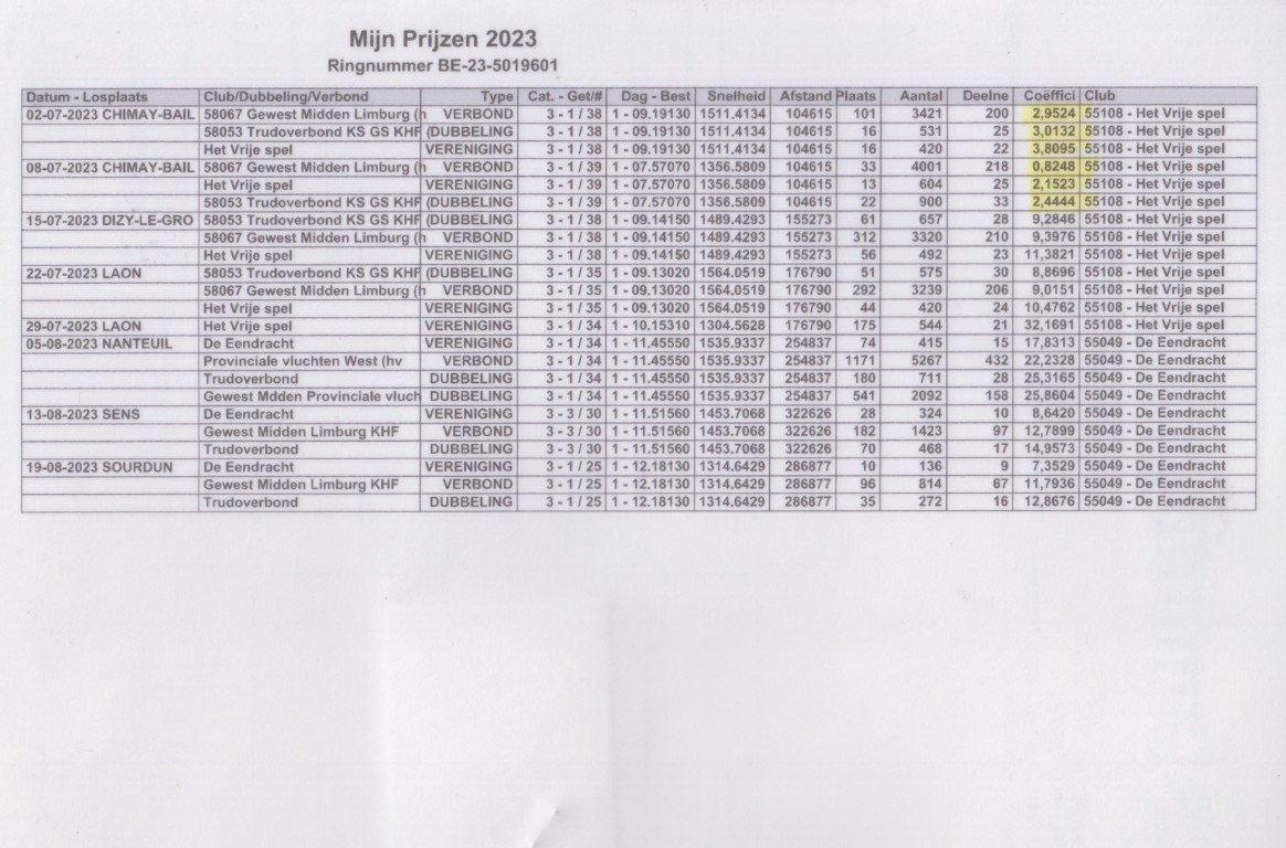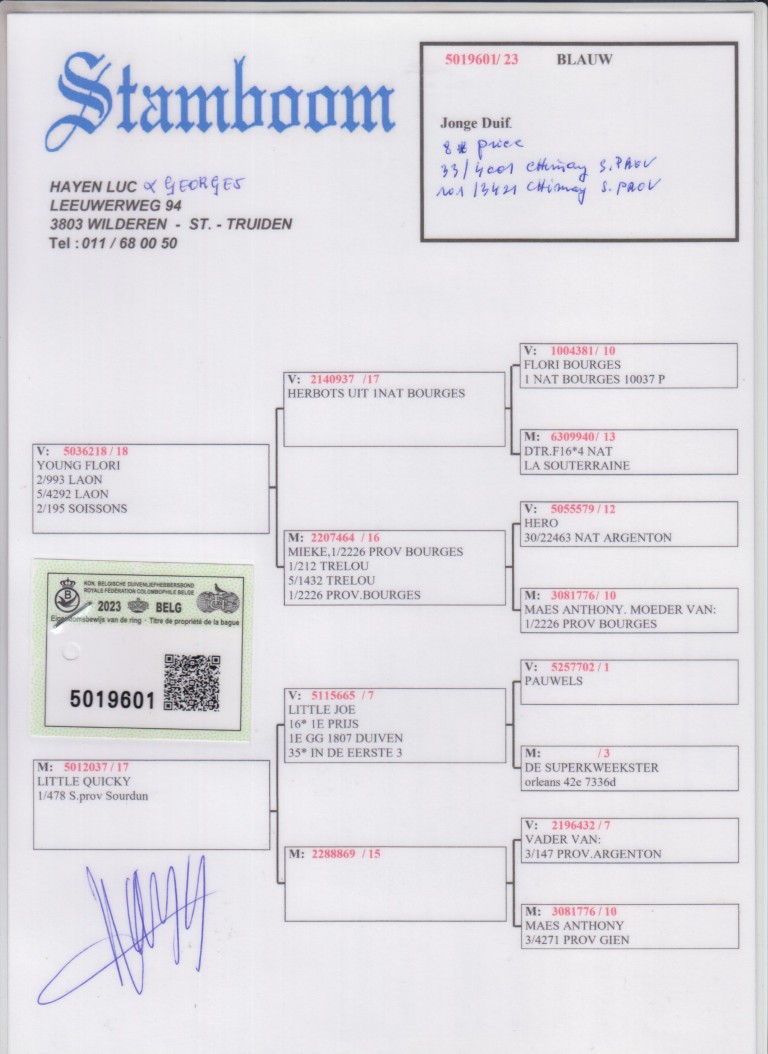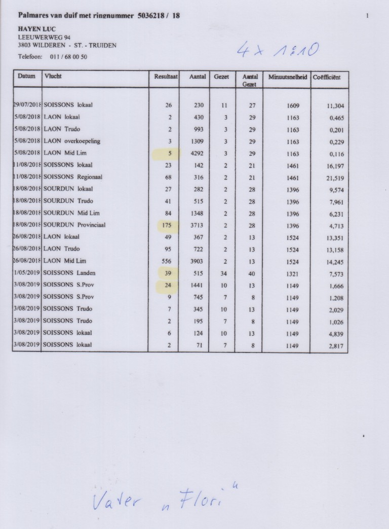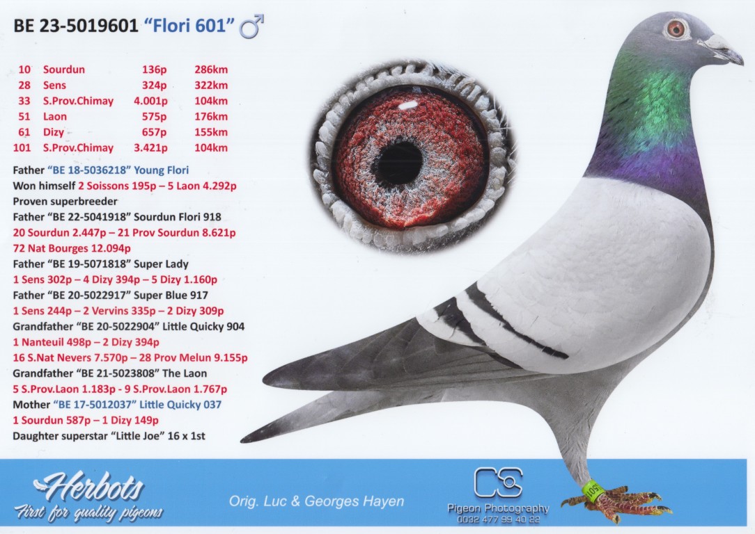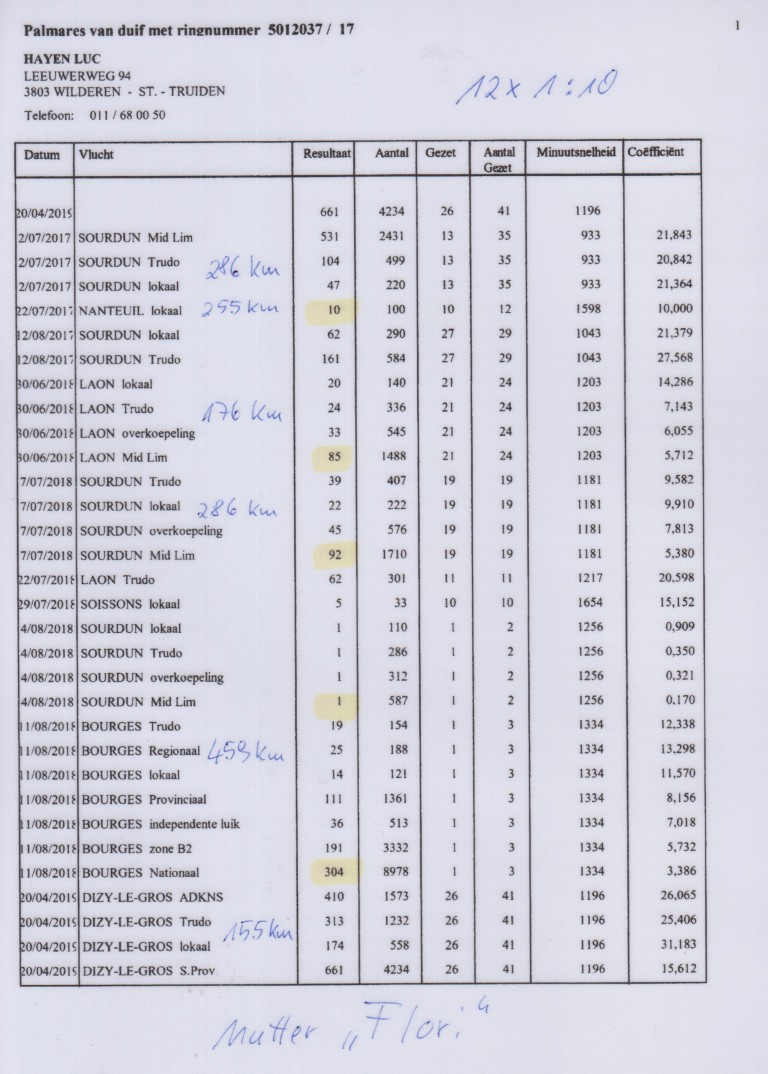 ”Flori 601”, 10.-136 d., 28.-324 d., 33.-4.001 d., 51.-575 d., uit: ”Young Flori”, 20.-2.447 d., 21. Prov. 8.621 d., vader 1.-302 d., 1.-244 d., 2.-335 d., 2.-309 d. x ”Little Quicky 037”, 1.-587 d., 1.-149 d., dochter ”Little Joe”, 16x 1.