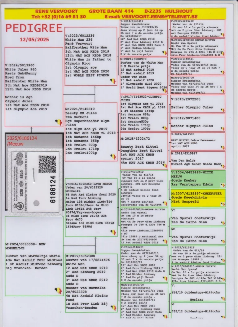 Hij komt uit BE14-6140411. Super Kweekduiver.