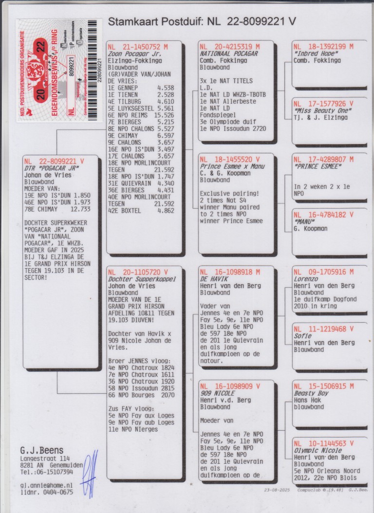 Grootvader: NL20-4215319. ‘National Pogacar’, Comb. Fokkinga.