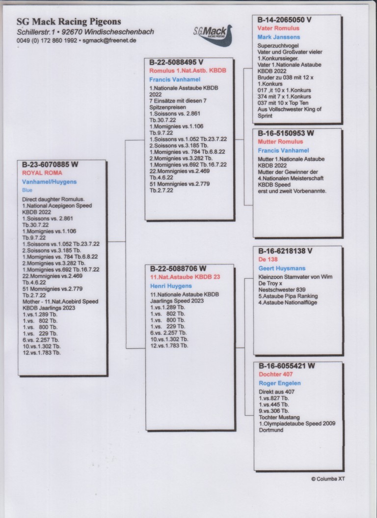 Lot 01 BE23-6070885 “Royal Roma” vanhamel/Huygens.