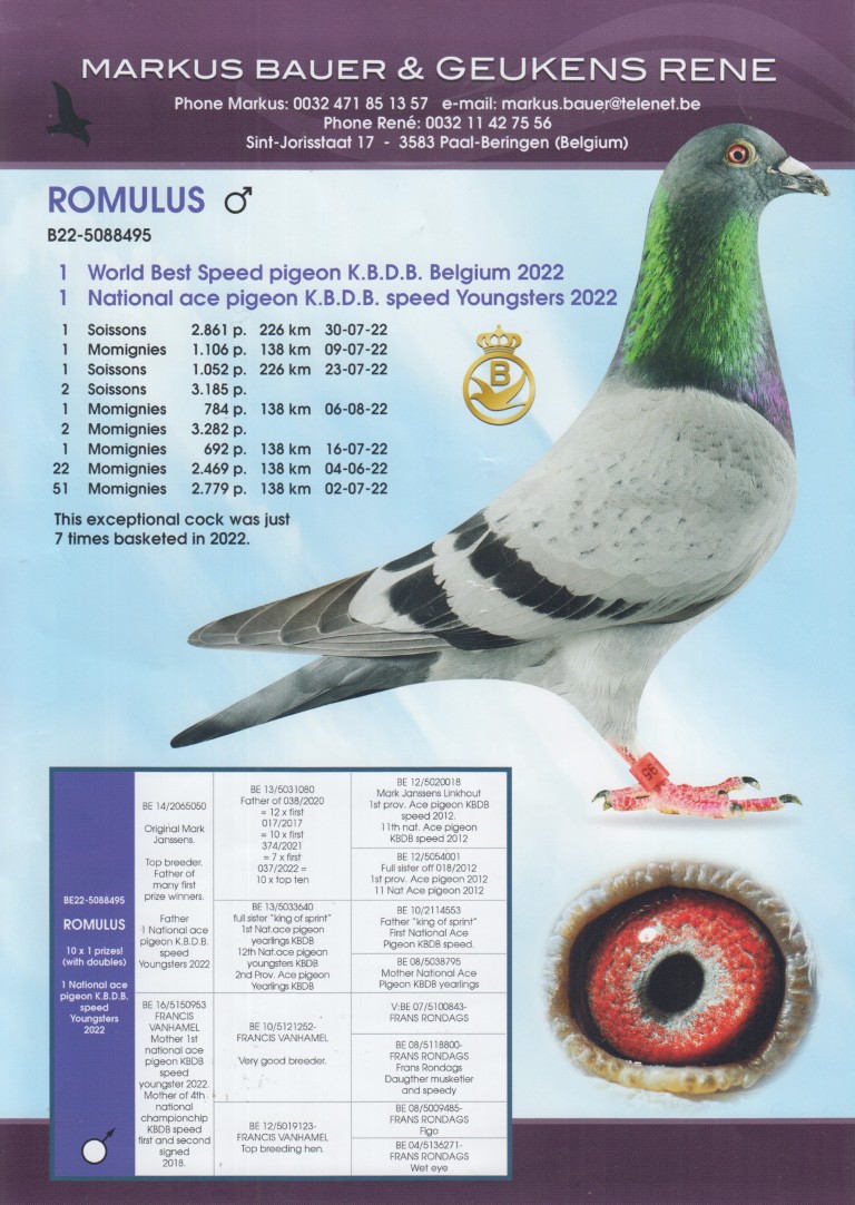Vader B22-5088495 “Romulus” Francis Vanhamel.