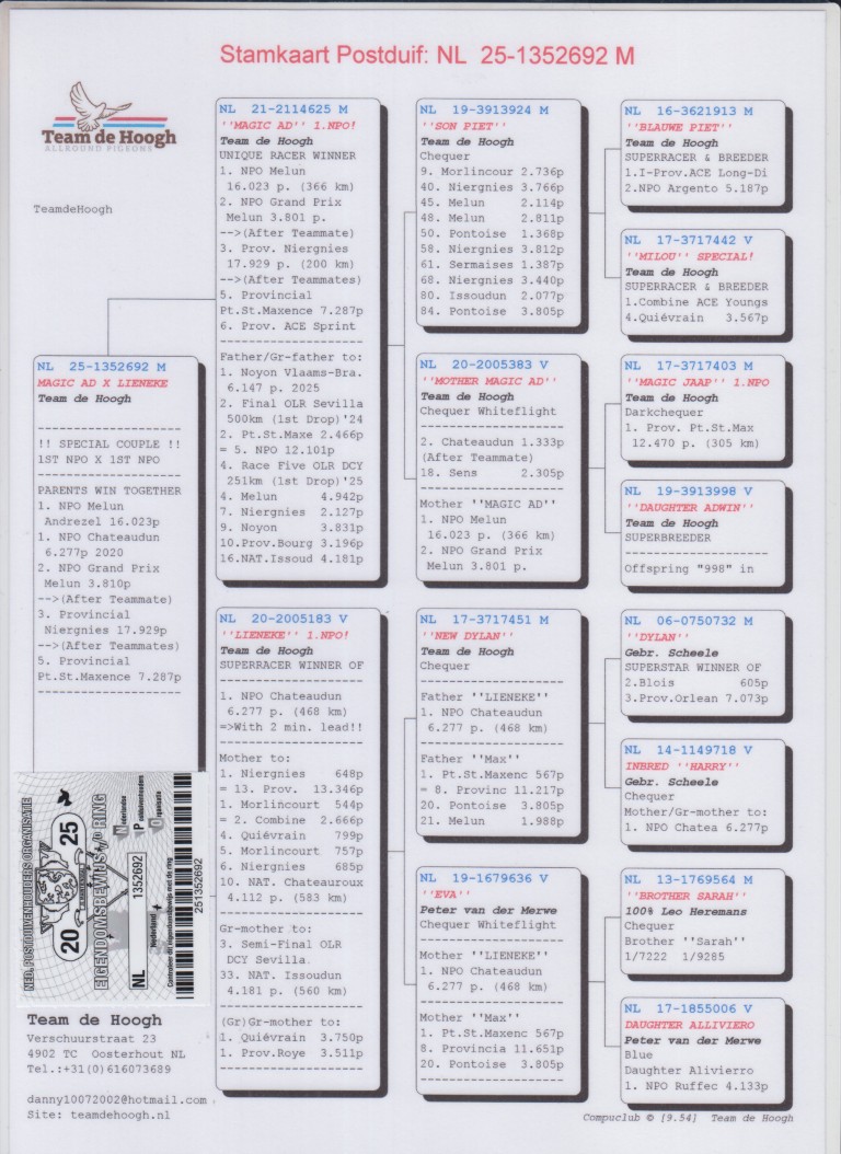 Uit: ”Magic Ad”, 1. NPO 16.023 d., 2. NPO GP 3.801 d., 3. Prov. 17.929 d., 5. Prov. 7.287 d., vader & grootvader 1.-6.147 d., 2. Finale OLR, 2.-2.466 d., 4. Race OLR x ”Lieneke”, 1. NPO Chateaudun 6.277 d. & Super kweker