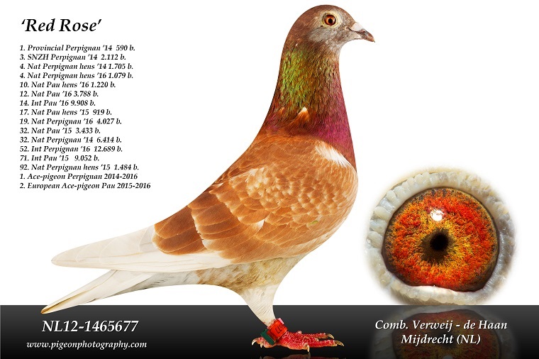 Uit: ”Son of Red Rose”, gr-vader 1. Semi-Nat., zoon ”Red Roos”, Superkweker x ”Lady Blue”, moeder ”Robin 1405”, 1. Nat. Hof, 1. Nat. Asduif, 9. Nat. Antwerpen, moeder ”Catwoman I 1406”, 2x 3. Nat. Winnaar
