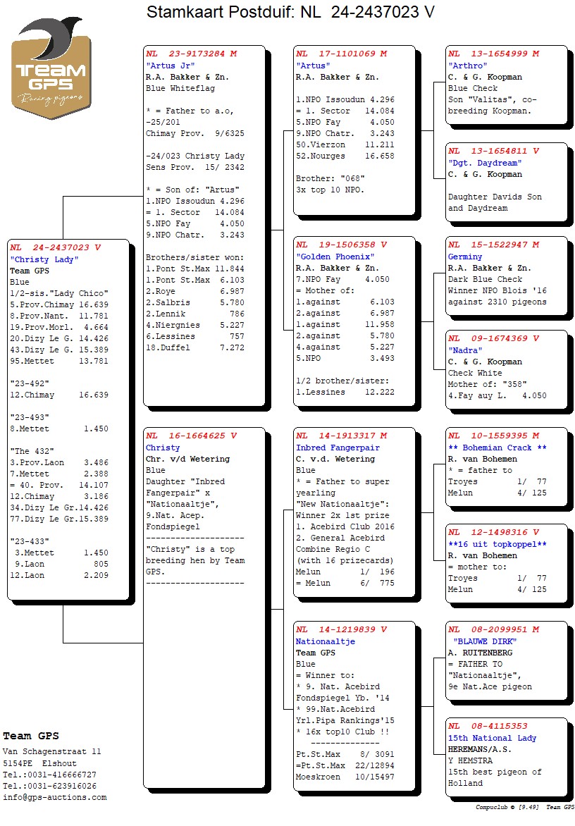 Grootvader NL14-1913317. Inteelt “Fangerpair”. C. v.d. Wetering